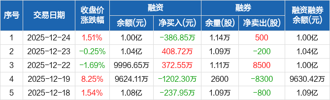 信音电子:融资净偿还386.85万元,融资余额1亿元(12-24)