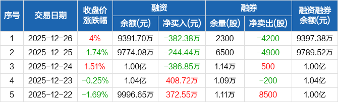信音电子:连续3日融资净偿还累计1013.67万元(12-26)