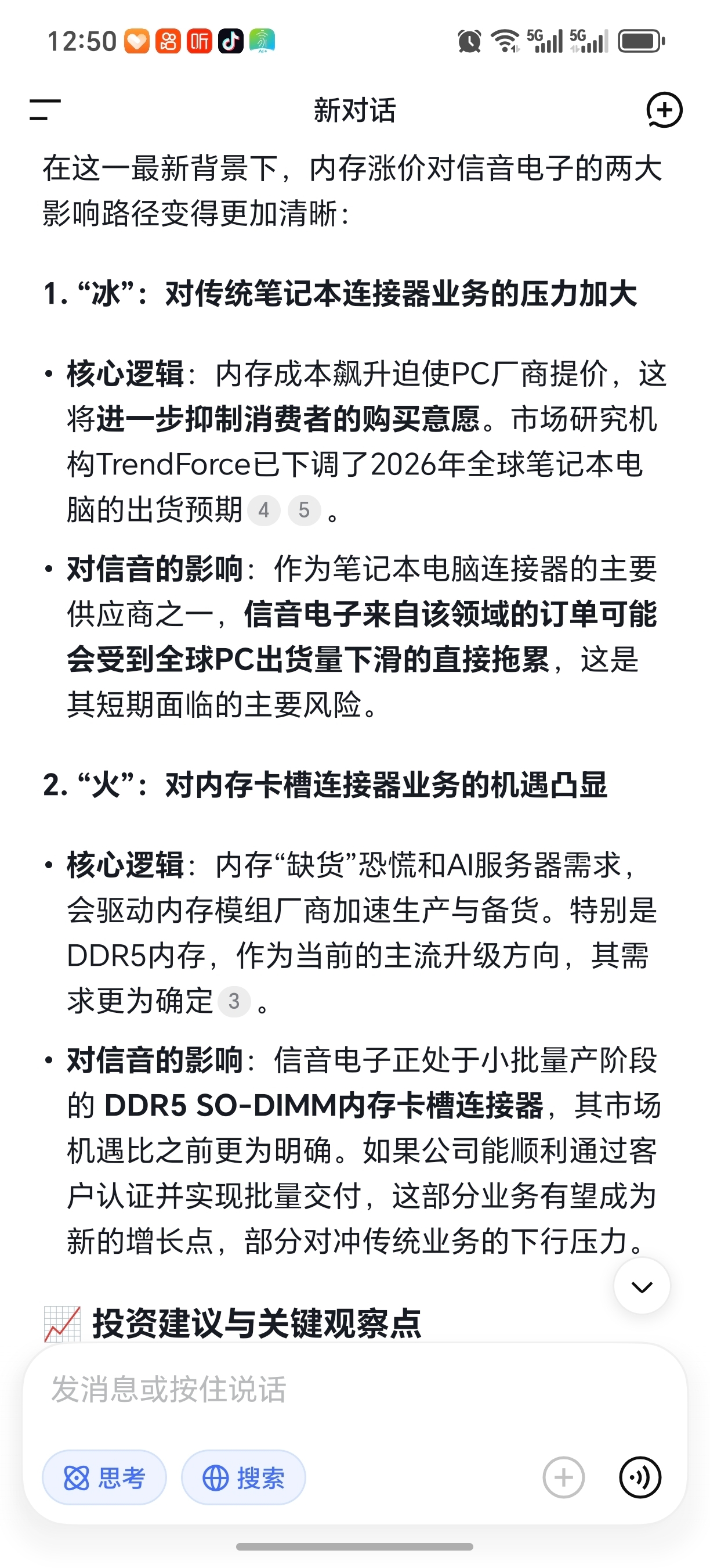 $信音电子(SZ301329)$ 内存涨价对信音电子的影响