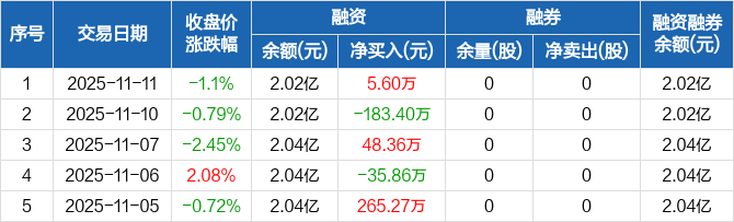 熵基科技:融资净买入5.6万元,融资余额2.02亿元(11-11)