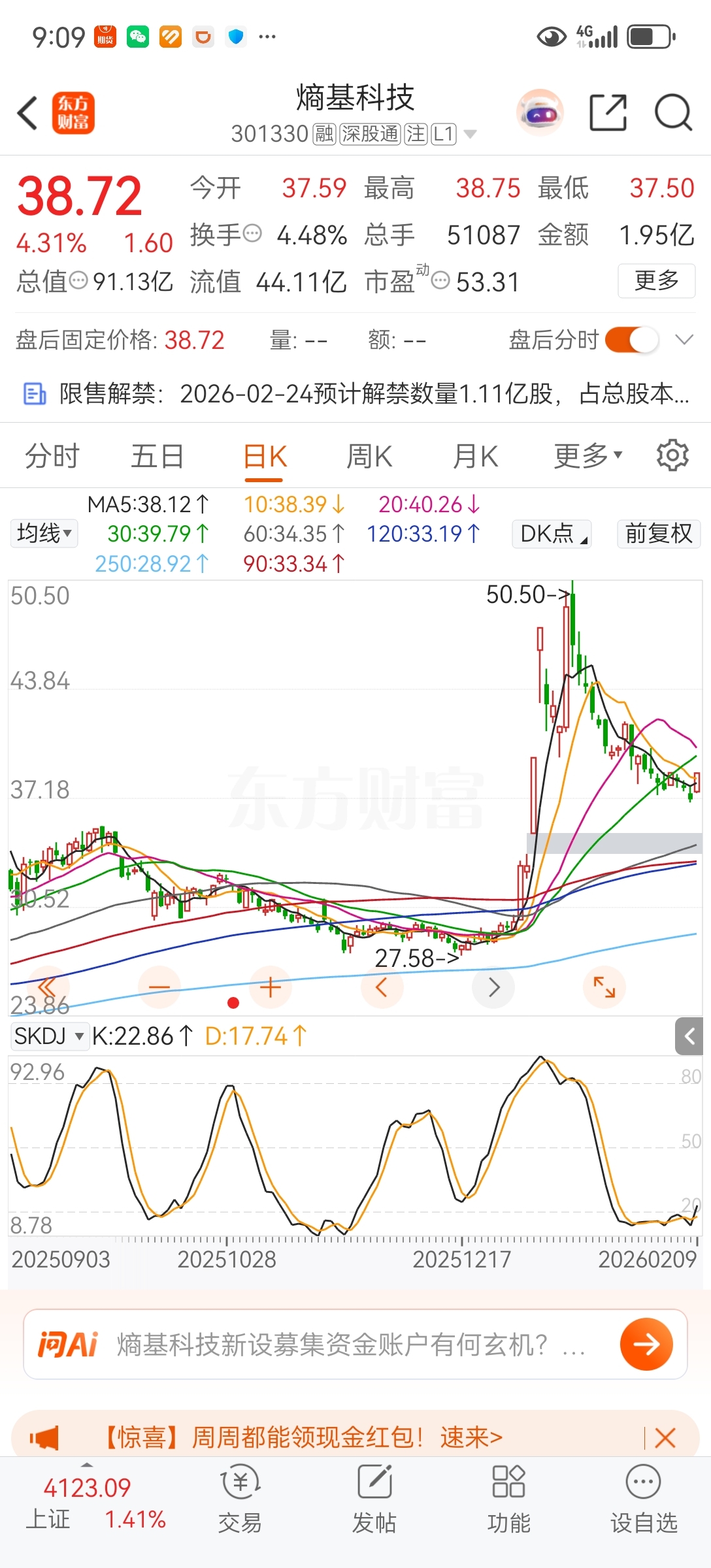 $熵基科技(SZ301330)$ 明天集合竞价砸跌停,250日线在33块呢,此股没庄,大家在这别浪费时间了,33买一百股建个底仓