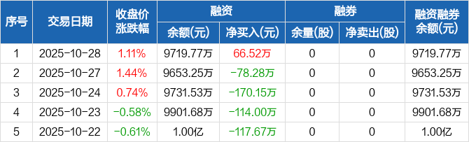 恩威医药:融资净买入66.52万元,融资余额9719.77万元(10-28)