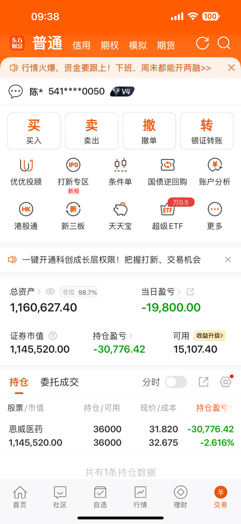 撑住#炒股日记# $恩威医药(SZ301331)$