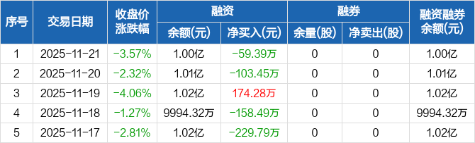 恩威医药:融资净偿还59.39万元,融资余额1亿元(11-21)