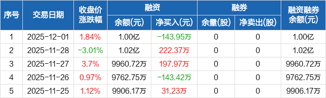 恩威医药:融资净偿还143.95万元,融资余额1亿元(12-01)