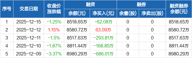 恩威医药:融资净偿还62.08万元,融资余额8518.65万元(12-15)