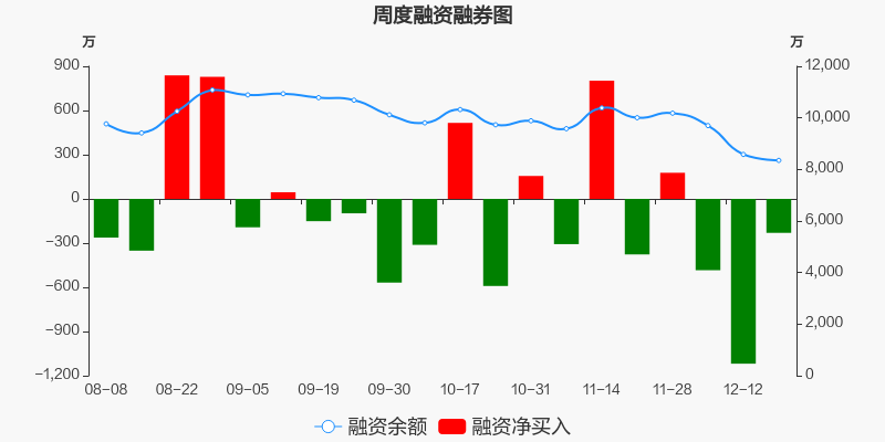 恩威医药本周(2025/12/15-2025/12/19)累计跌幅达1.1%,截至12月19日最新股价报收26.88元。从增量上来看,12月15日至12月18日融资买入交易规模720.12万元,融资偿还规模950.54万元,期内融资净偿还230.41万元。从存量上来看,截止12月21日,恩威医药融资融券余额8350.31万元,其中融资余额规模8350.31万元,融券余额规模0元。