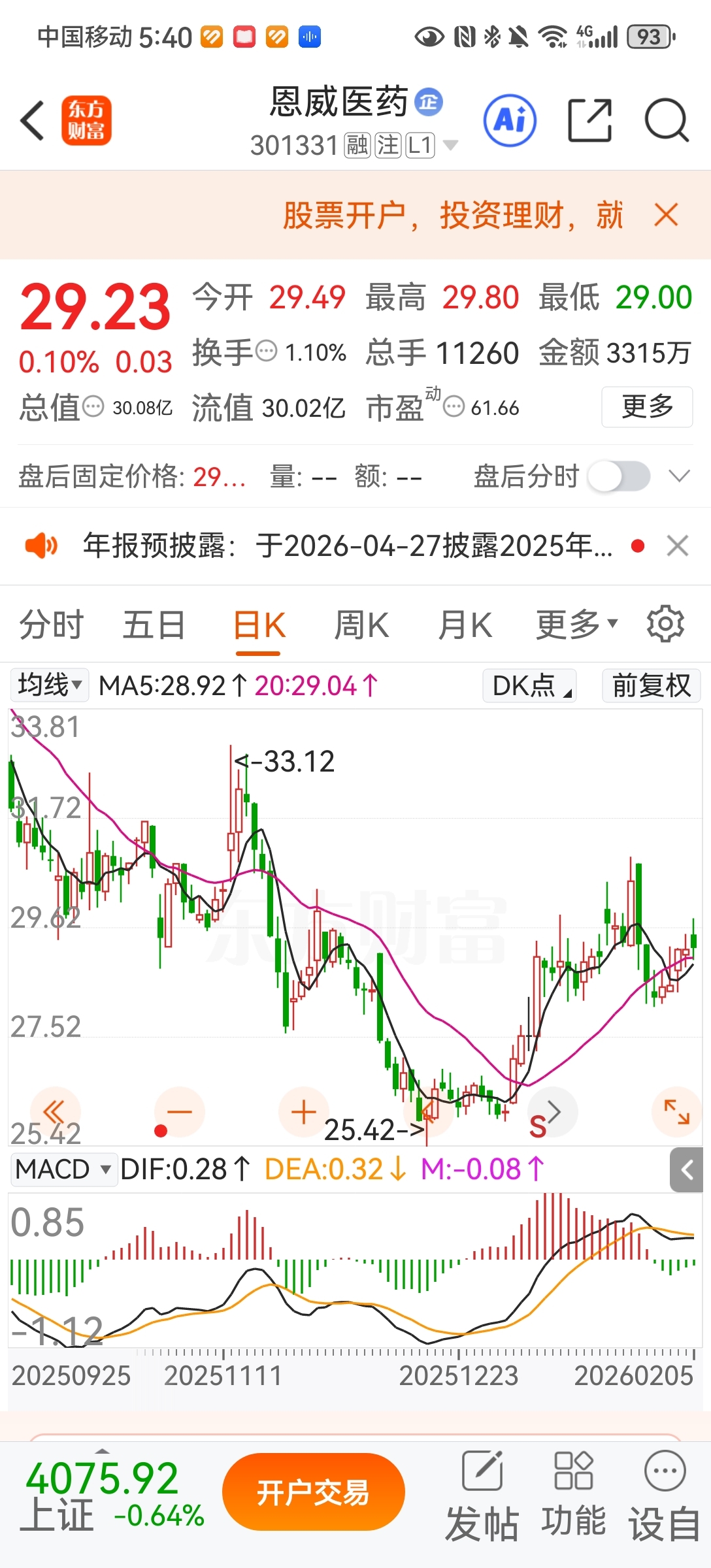 中药板块MACD金叉,恩威也是水上金叉