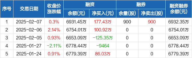 德尔玛:融资净买入177.43万元,融资余额6931.45万元(02-07)