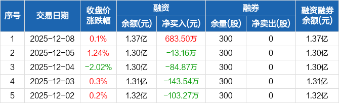德尔玛:融资净买入683.5万元,融资余额1.37亿元(12-08)