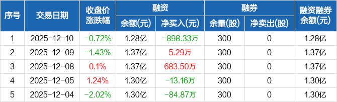 德尔玛:融资净偿还898.33万元,融资余额1.28亿元(12-10)