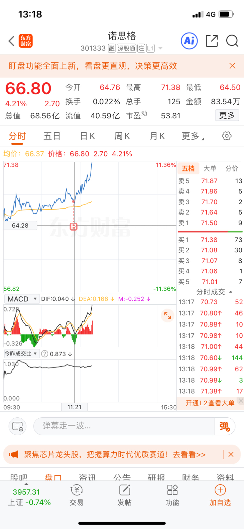 午盘介入的$诺思格(SZ301333)$ 期待能拿下涨停