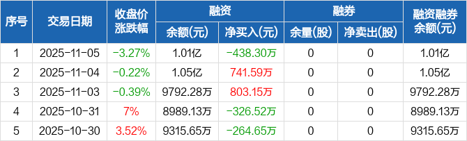 诺思格:融资净偿还438.3万元,融资余额1.01亿元(11-05)
