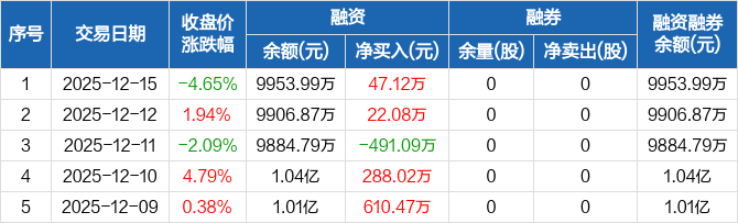 诺思格:融资净买入47.12万元,融资余额9953.99万元(12-15)