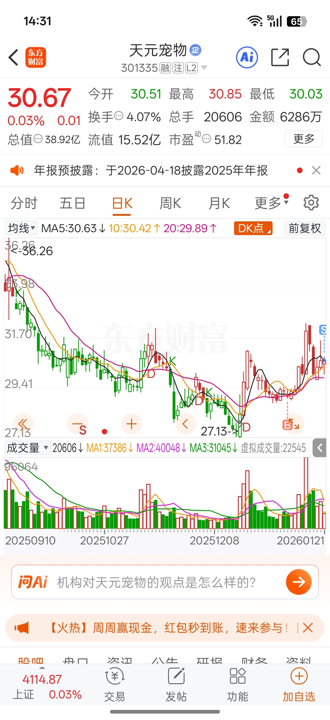 $天元宠物(SZ301335)$ 终于把这垃圾股卖了,半死不活的太狗了,天知道它啥时候一个终止并购重组的公告就只有被摁在地上摩擦了,早点离开得好,起码我还是赚钱的