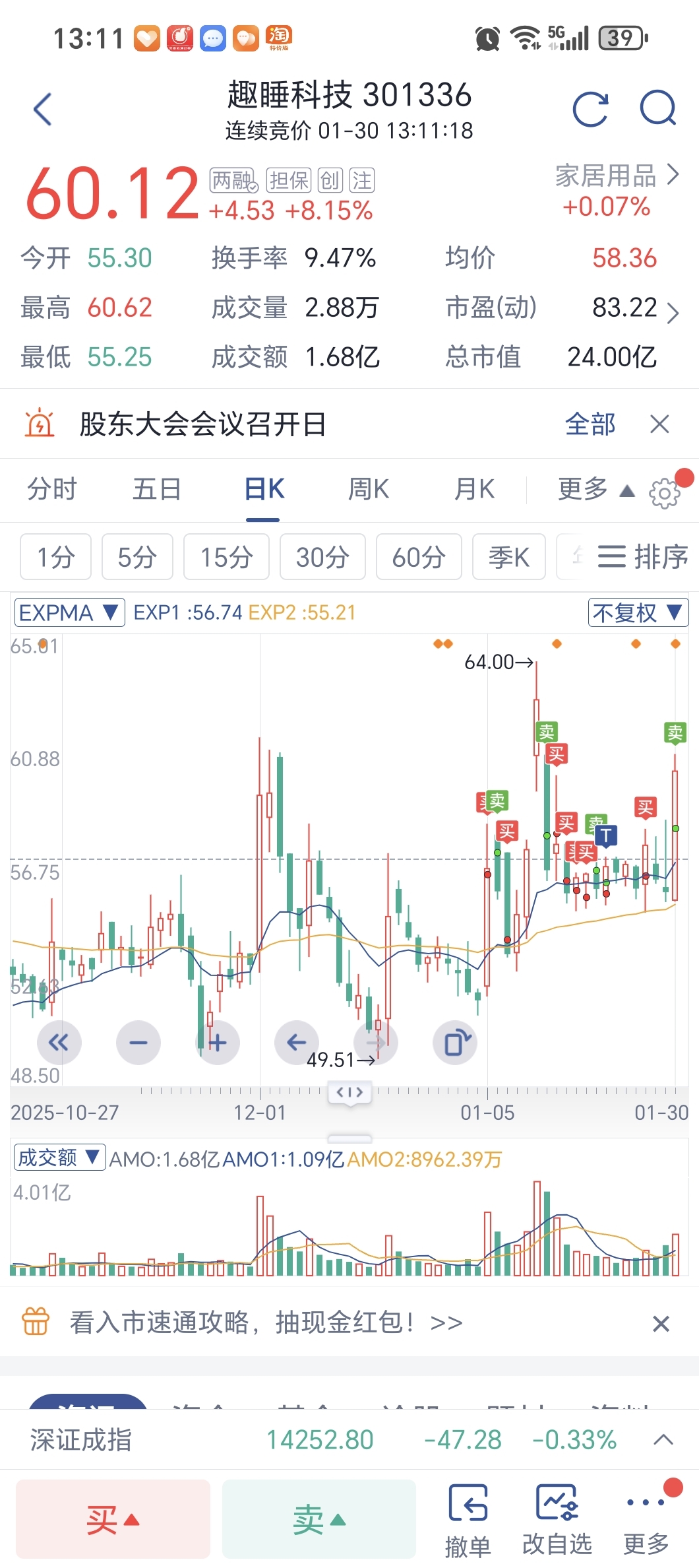 $趣睡科技(SZ301336)$ 确实不该我挣钱,就多了我一个