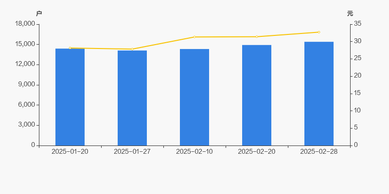 自2025年1月27日以来,公司股东户数连续3期上涨,截至目前增幅为9.16%。2025年1月27日至2025年2月28日区间股价上涨17.57%。