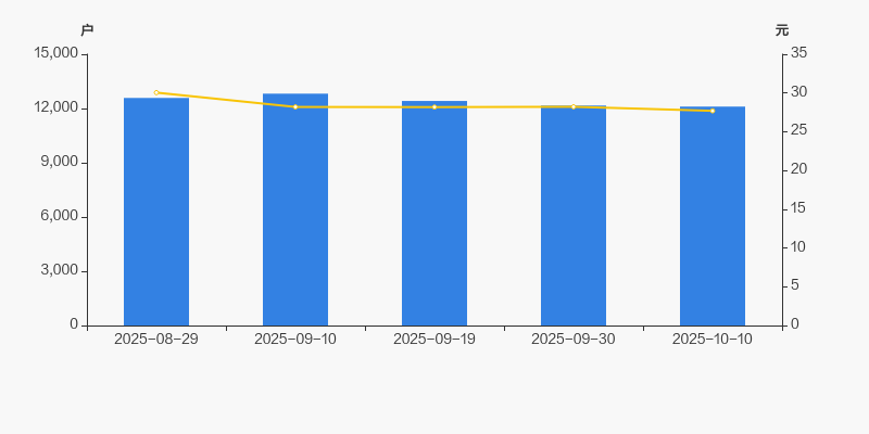 截至2025年10月10日,公司最新总股本为1.04亿股,其中流通股本为3698.58万股。户均持有流通股数量由上期的3041股上升至3055股,户均流通市值8.46万元。