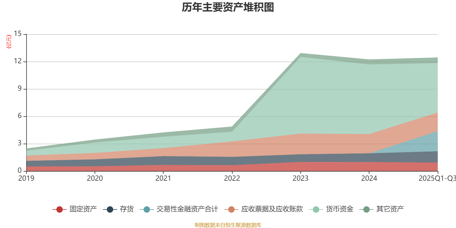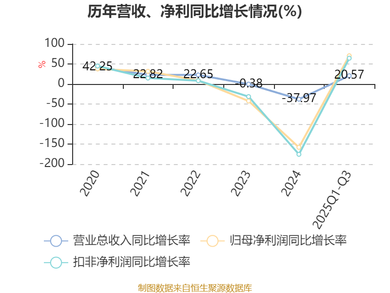 资产重大变化方面,截至2025年三季度末,公司货币资金较上年末减少29.08%,占公司总资产比重下降18.9个百分点;交易性金融资产合计占公司总资产的17.77%,上年末为0;存货较上年末增加30.65%,占公司总资产比重上升2.21个百分点;应收票据及应收账款较上年末减少2.93%,占公司总资产比重下降0.79个百分点。