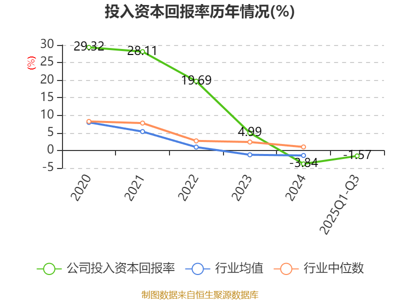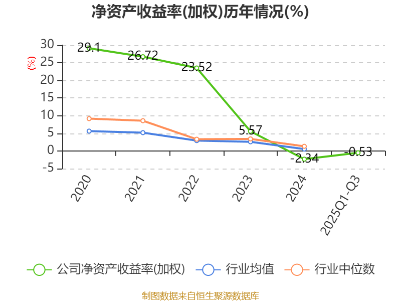 盈利能力方面, 2025年前三季度公司加权平均净资产收益率为-0.53%,同比上升1.21个百分点。公司2025年前三季度投入资本回报率为-1.57%,较上年同期上升1.16个百分点。
