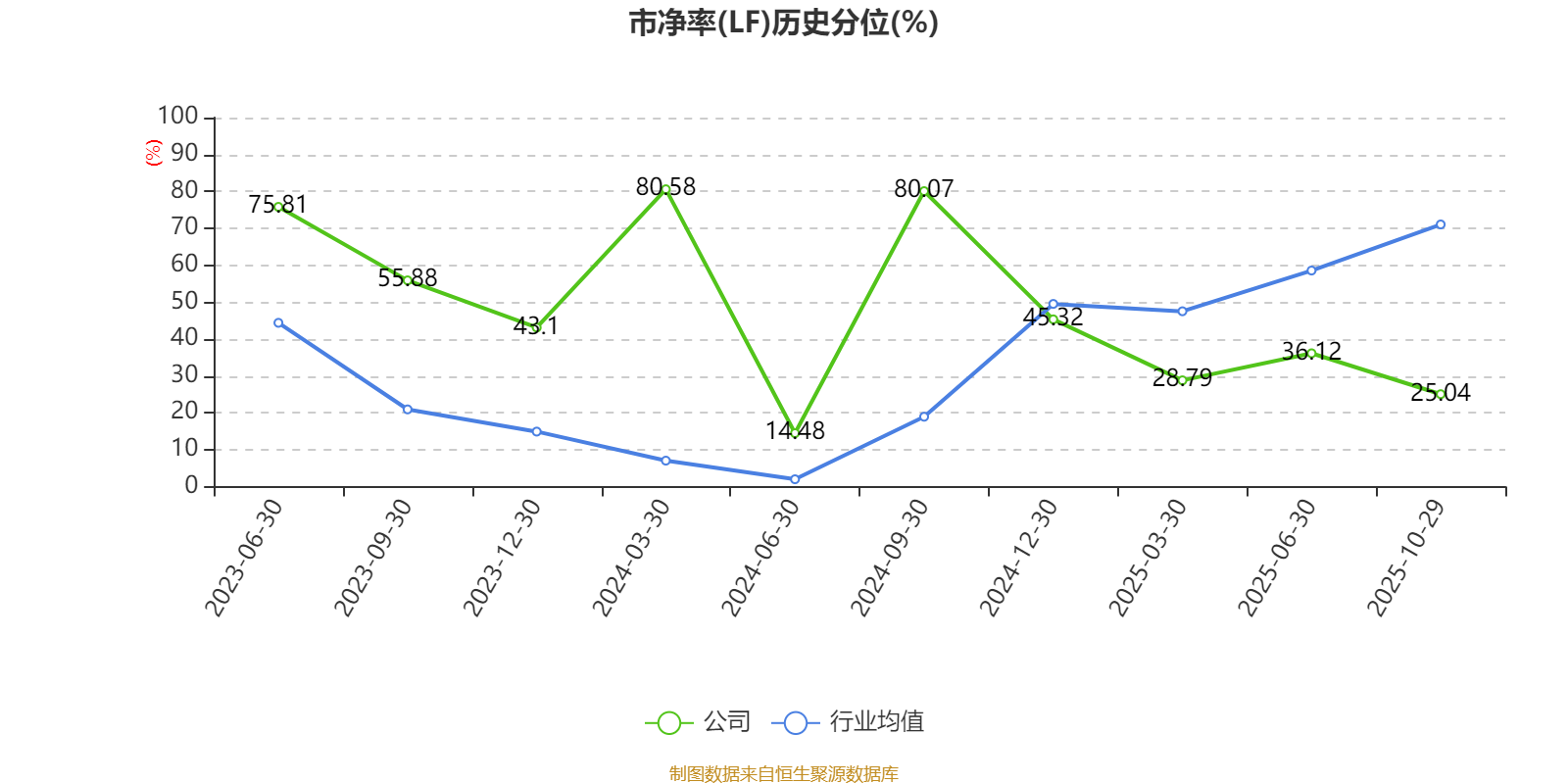 市盈率、市净率为负时,不显示当期分位数,会导致折线图中断。