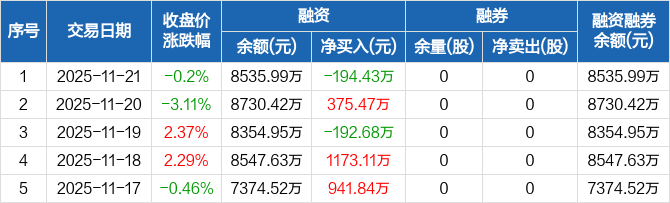 亚华电子:融资净偿还194.43万元,融资余额8535.99万元(11-21)