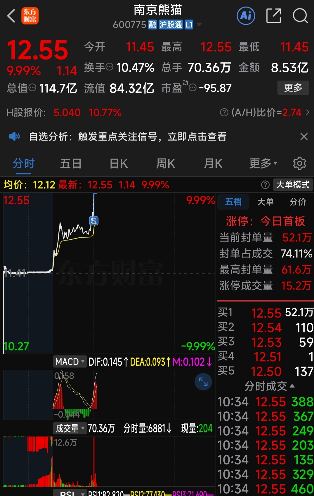 咋天换了个熊猫,今涨停笑哈哈先卖一半!总比呆在这里强!