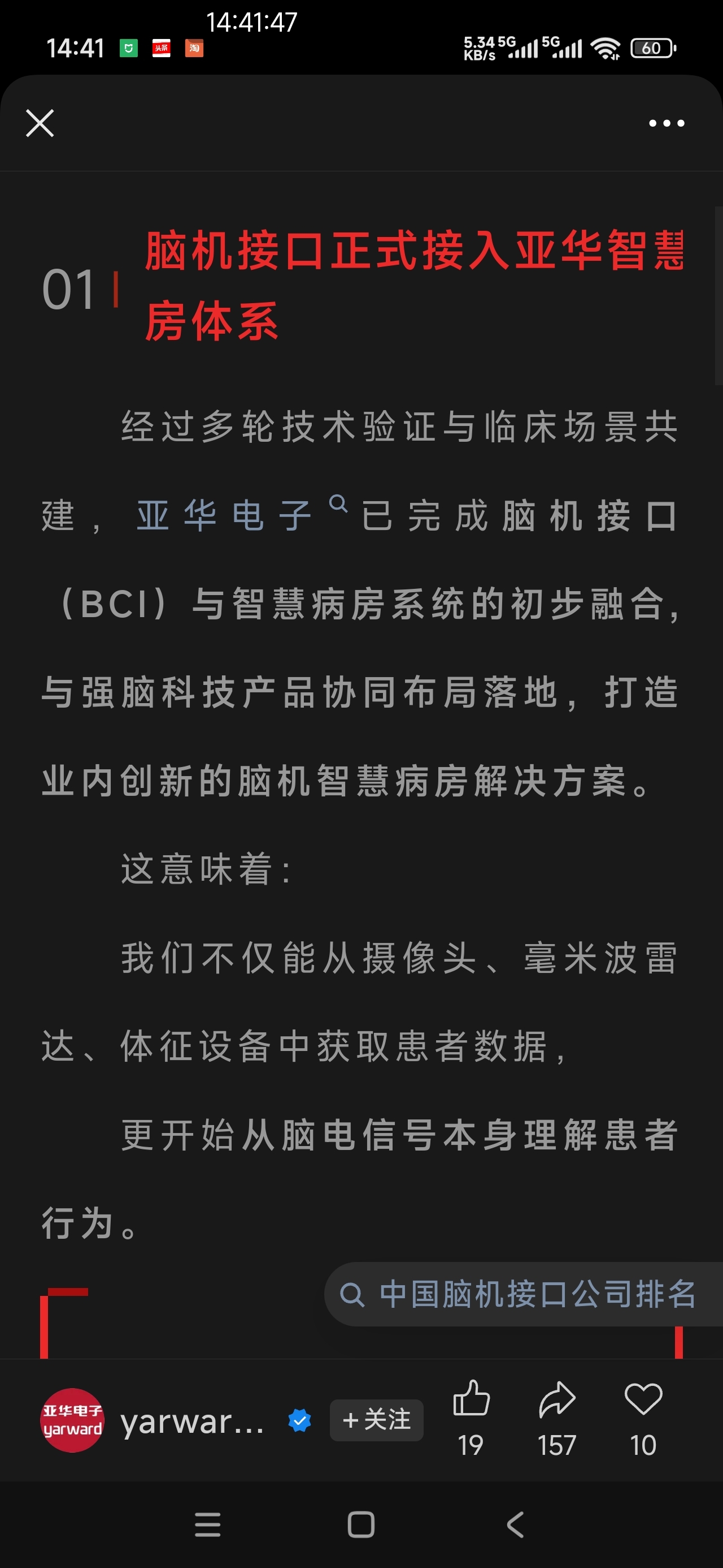$亚华电子(SZ301337)$ 脑机概念