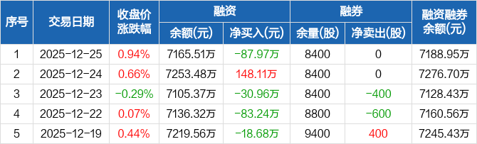 亚华电子:融资净偿还87.97万元,融资余额7165.51万元(12-25)