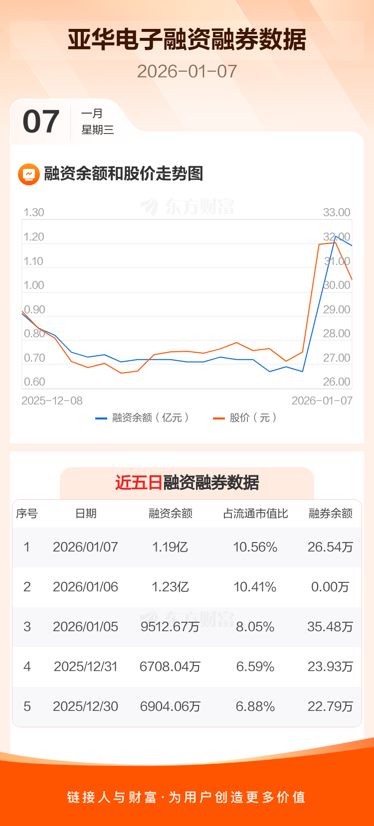 交易所最新数据显示,亚华电子于2026年1月7日获融资买入3920.38万元,融资偿还4333.64万元,当日融资净偿还413.26万元。目前,该股融资余额1.19亿,占流通市值比例为10.56%。
