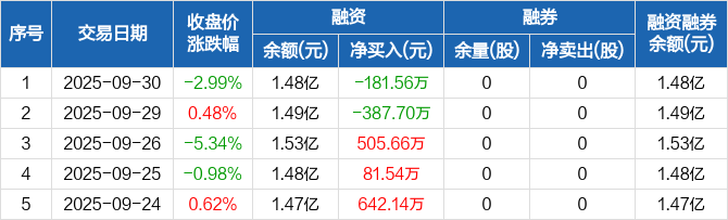 凯格精机:融资净偿还181.56万元,融资余额1.48亿元(09-30)