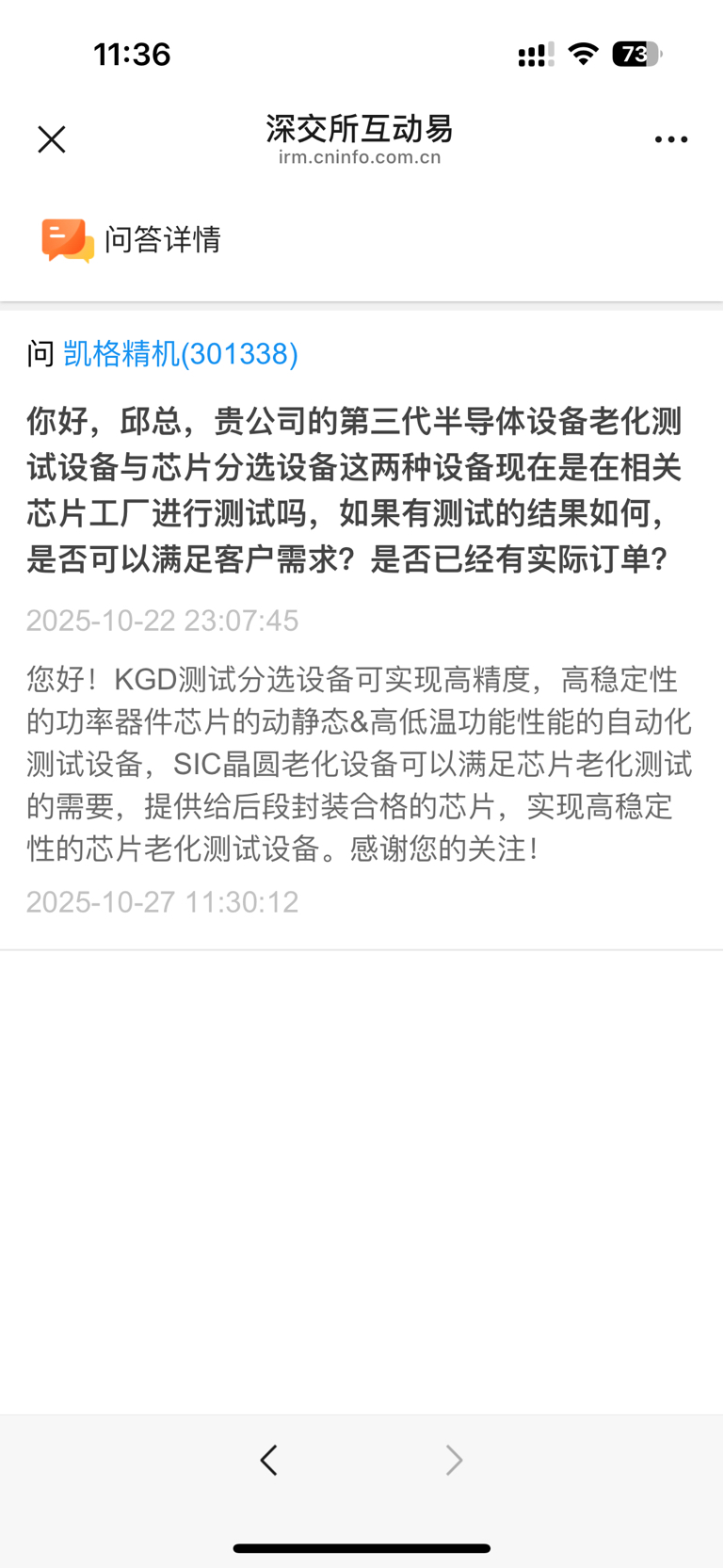 $凯格精机(SZ301338)$ 大家可以放心了,关于半导体的两款设备已经在市场上有测试!客户反应不错