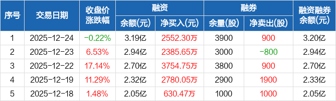 凯格精机:融资余额3.19亿元,创历史新高(12-24)