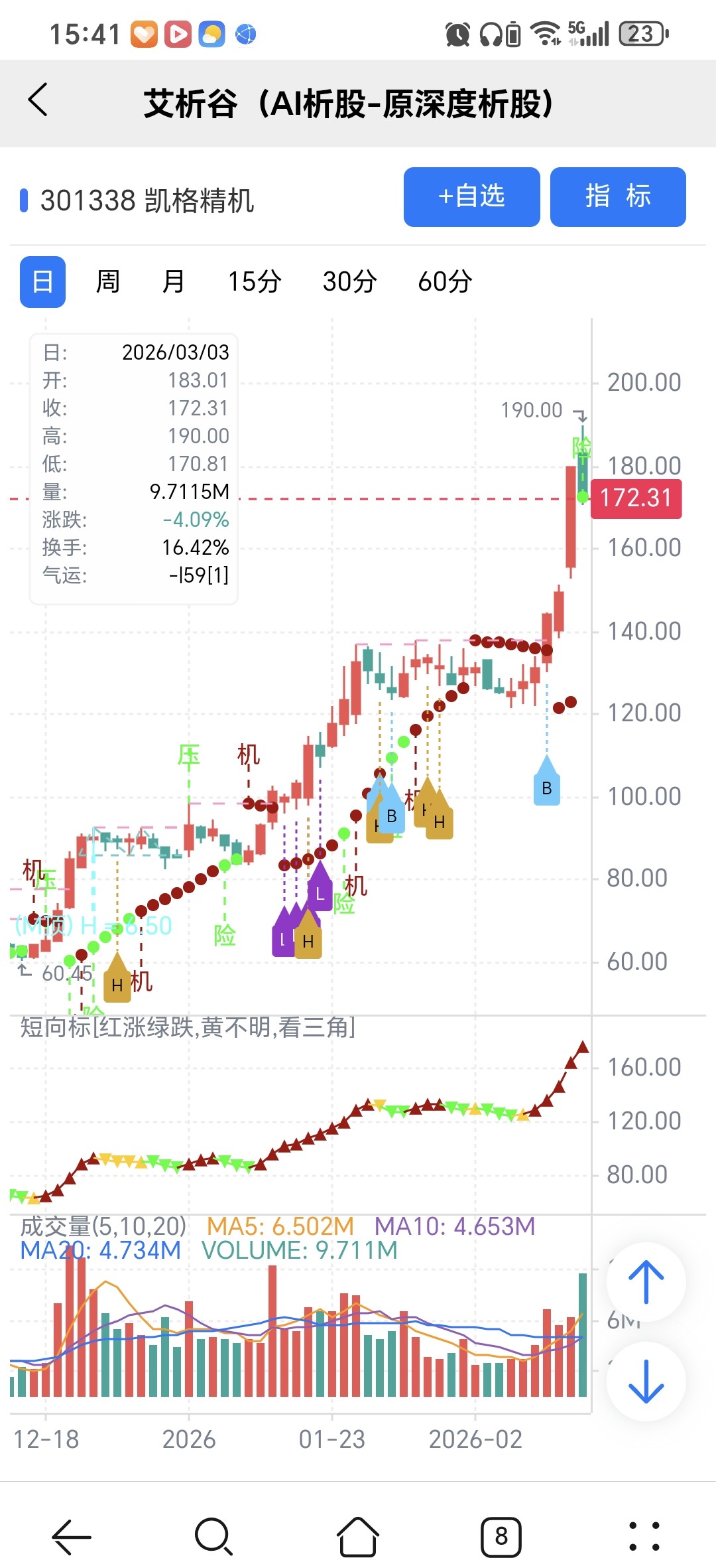 AI模型选股,量化指标识别关键点,简单技术分析确定买卖点,结合量化和人工综合运用,才能有优势。凯格精机