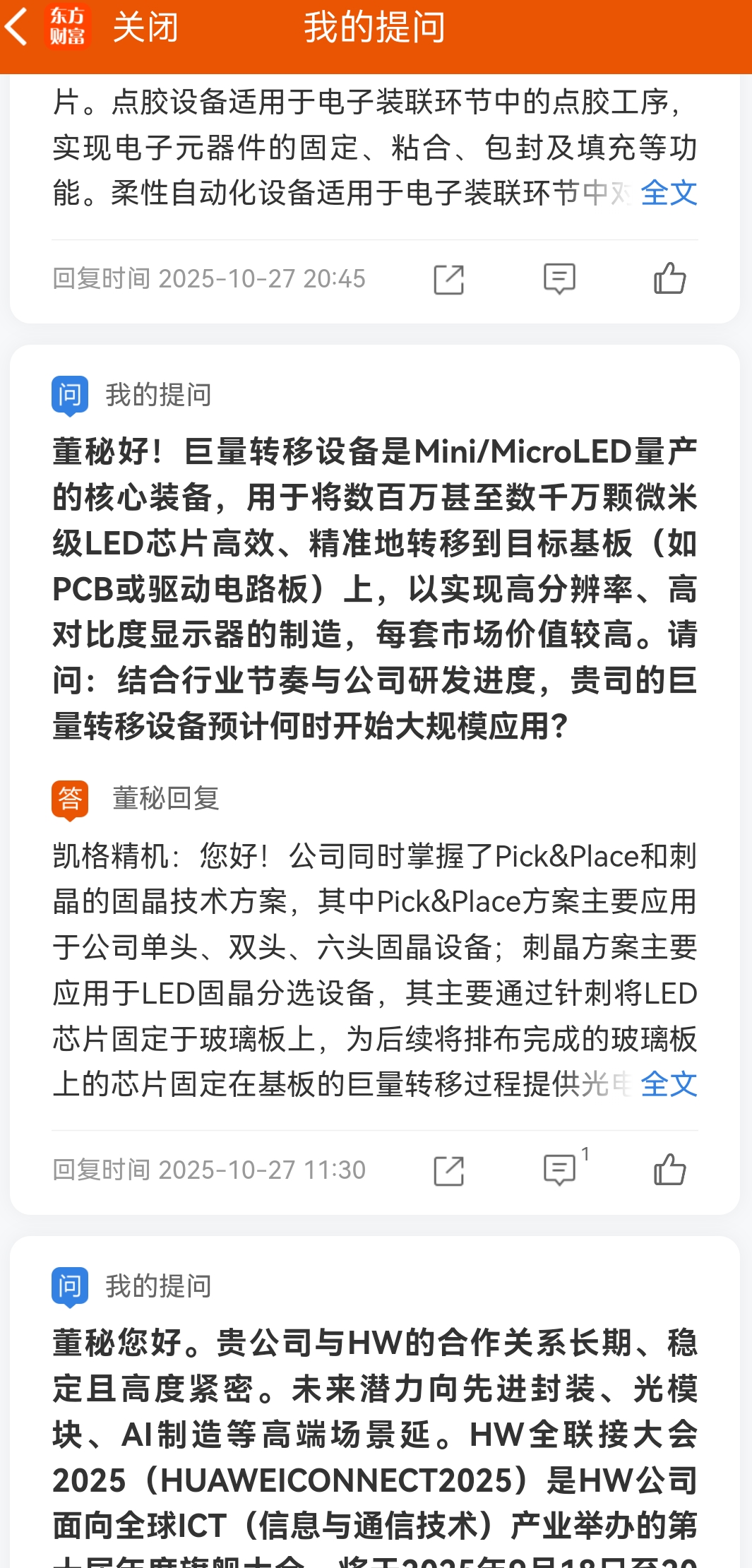 ………25年10月问过董秘关于巨量转移设备,后面没怎么去关注。小伙伴们有空可以给董秘提问题,巨量转移设备技术难度大,价值高。