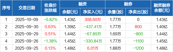通行宝:融资净买入308.6万元,融资余额1.43亿元(10-09)