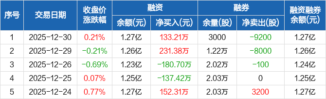 通行宝:融资净买入133.21万元,融资余额1.27亿元(12-30)