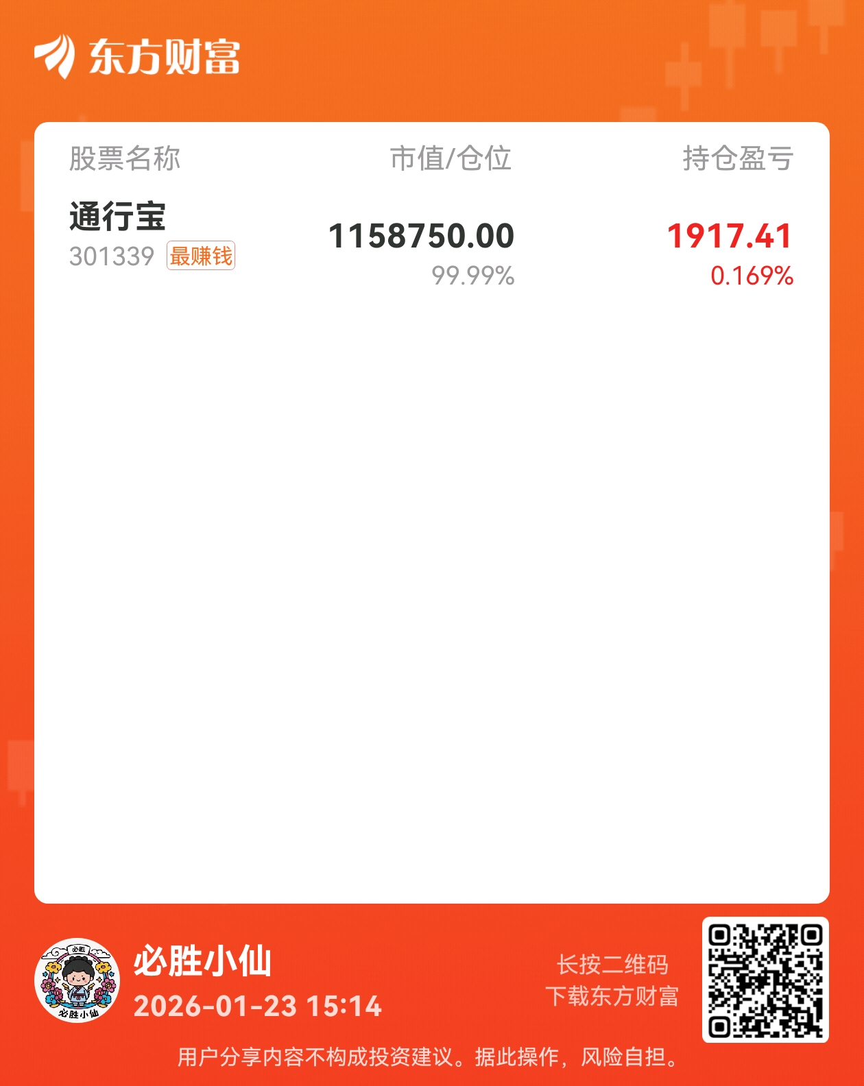 郑重声明:用户在财富号/股吧/博客等社区发表的所有信息(包括但不限于文字、视频、音频、数据及图表)仅代表个人观点,与本网站立场无关,不对您构成任何投资建议,据此操作风险自担。请勿相信代客理财、免费荐股和炒股培训等宣传内容,远离非法证券活动。请勿添加发言用户的手机号码、公众号、微博、微信及QQ等信息,谨防上当受骗!