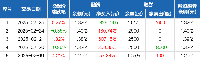 蓝箭电子:融资净偿还829.79万元,融资余额1.32亿元(02-25)