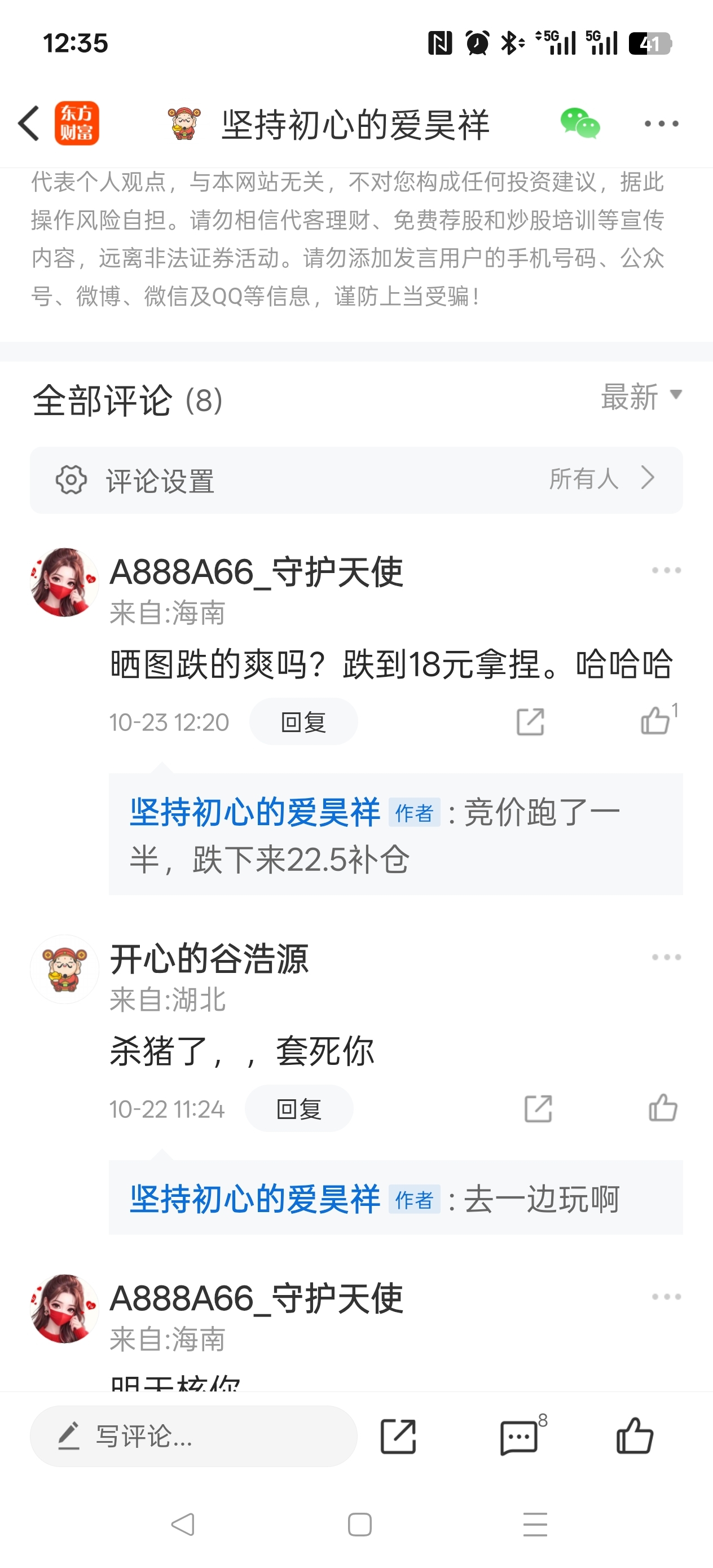 温馨提示: 1.根据《证券法》规定,禁止编造、传播虚假信息或者误导性信息,扰乱证券市场;2.用户在本社区发表的所有资料、言论等仅代表个人观点,与本网站立场无关,不对您构成任何投资建议。用户应基于自己的独立判断,自行决定证券投资并承担相应风险。《东方财富社区管理规定》