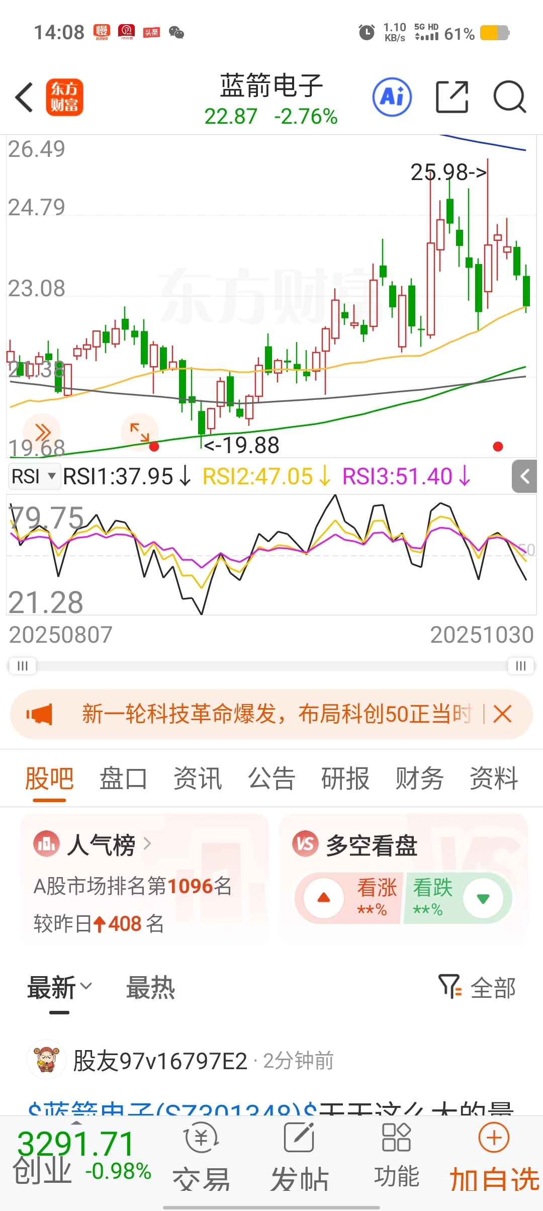 $蓝箭电子(SZ301348)$ 给你们看看支撑和压力