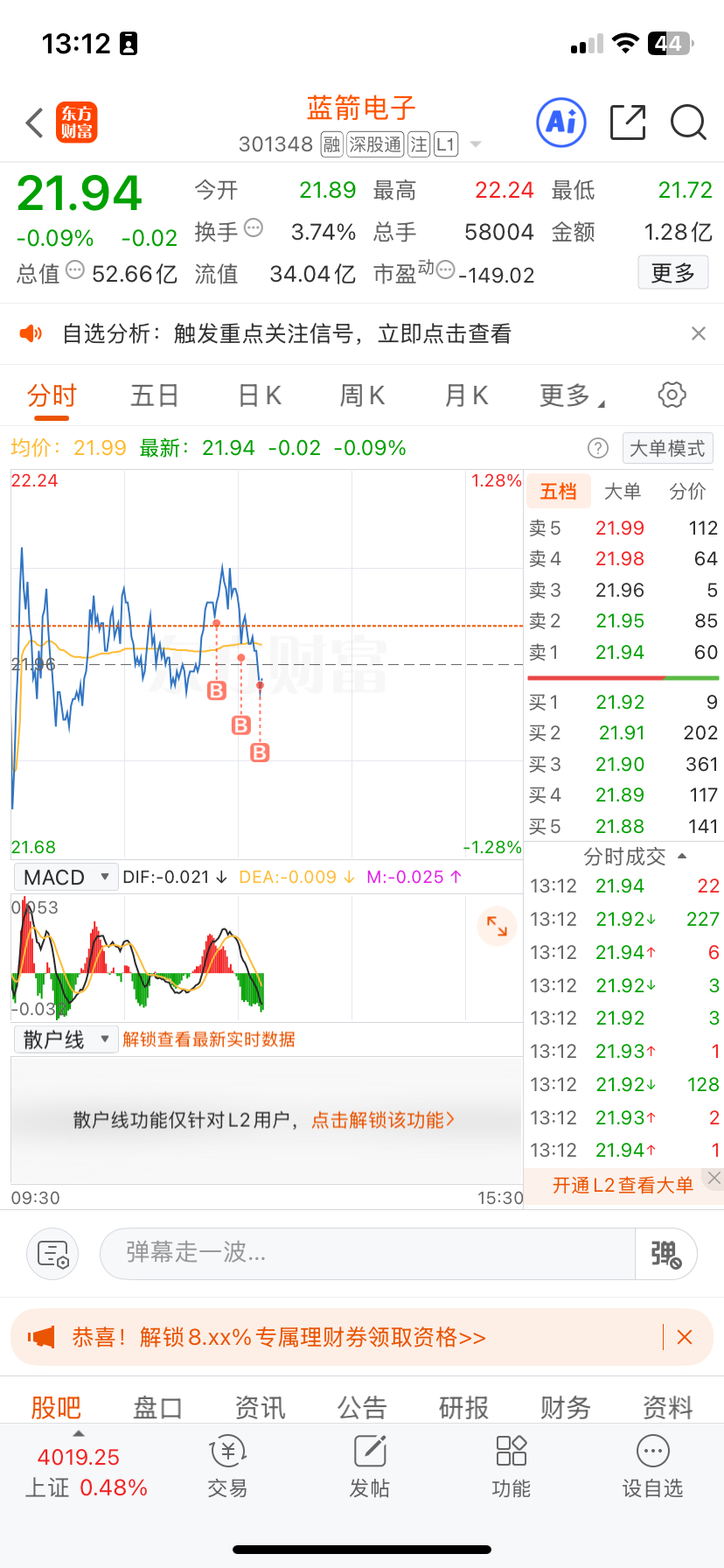 $蓝箭电子(SZ301348)$ 进来躲牛市