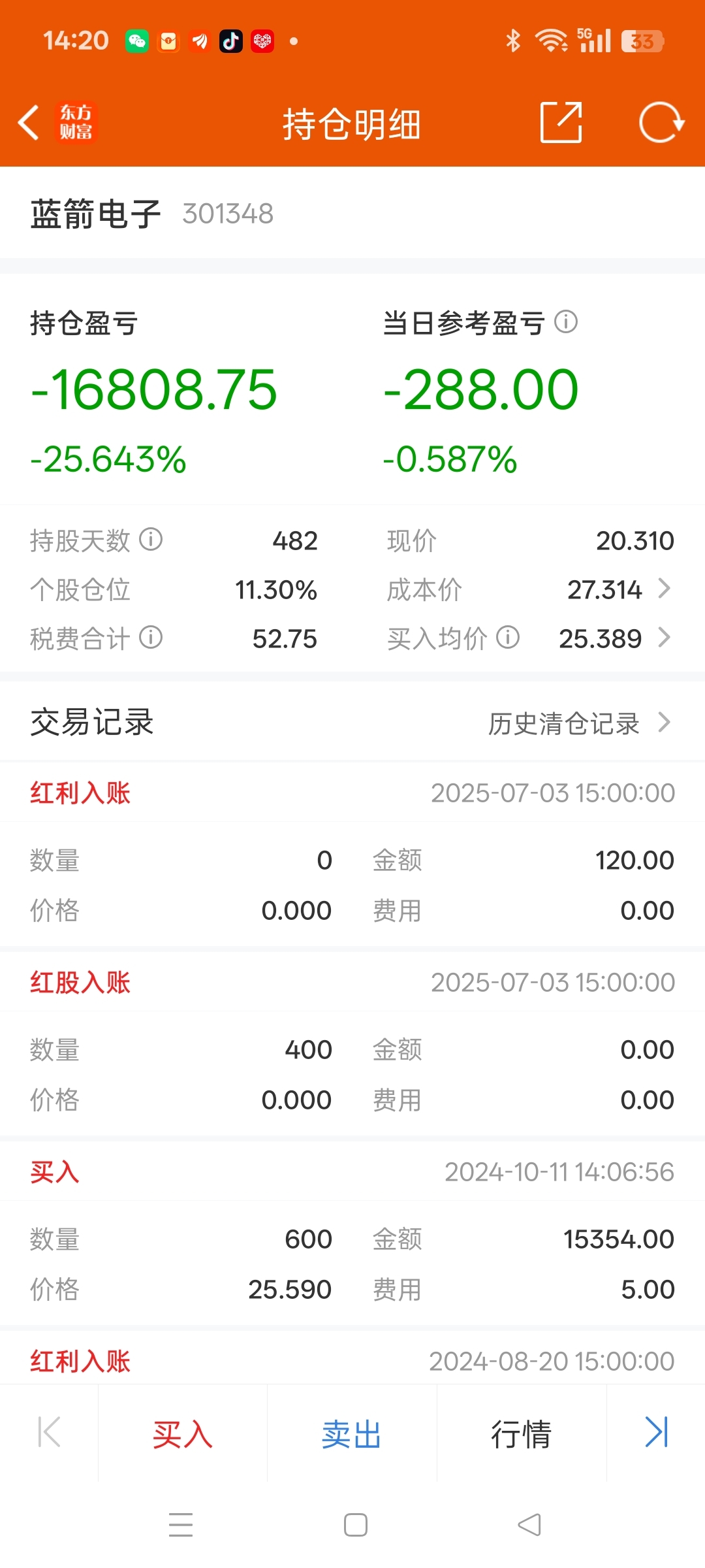 $蓝箭电子(SZ301348)$ 拿了1年多了,还亏二十多个点,没进的看看吧,它是真垃圾