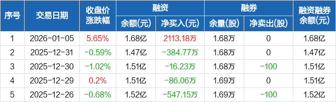 蓝箭电子:融资净买入2113.18万元,融资余额1.68亿元(01-05)