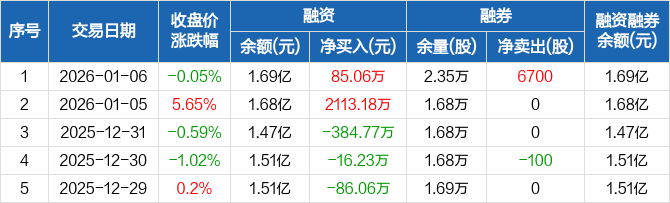 蓝箭电子:融资净买入85.06万元,融资余额1.69亿元(01-06)