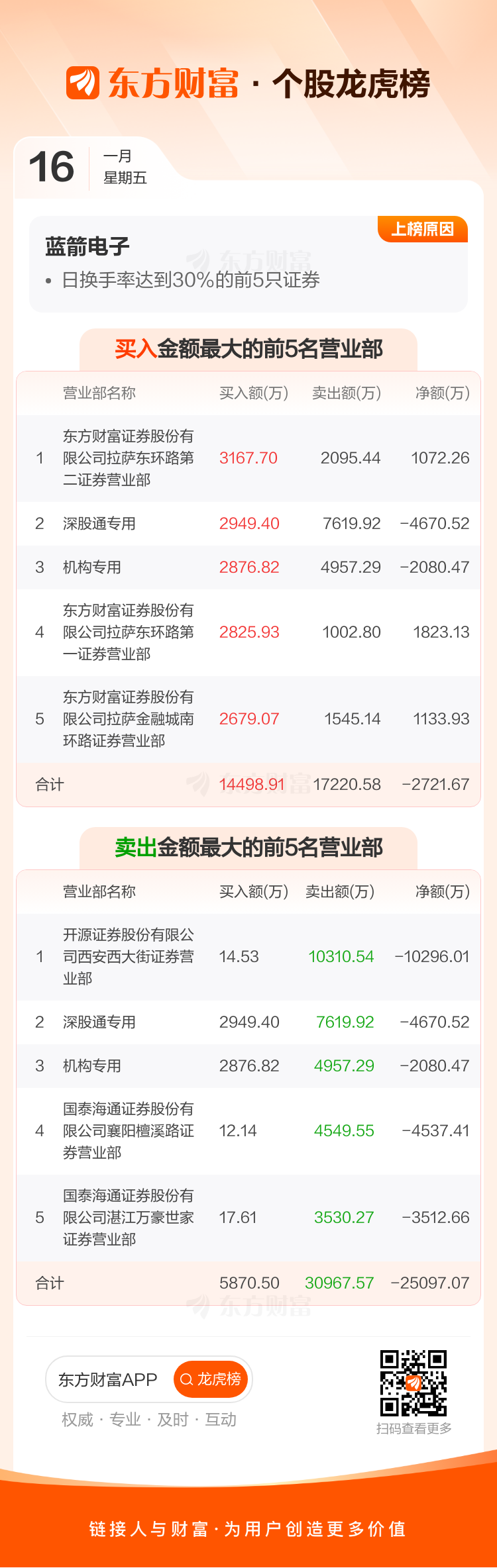 蓝箭电子(301348)龙虎榜数据(01-16)