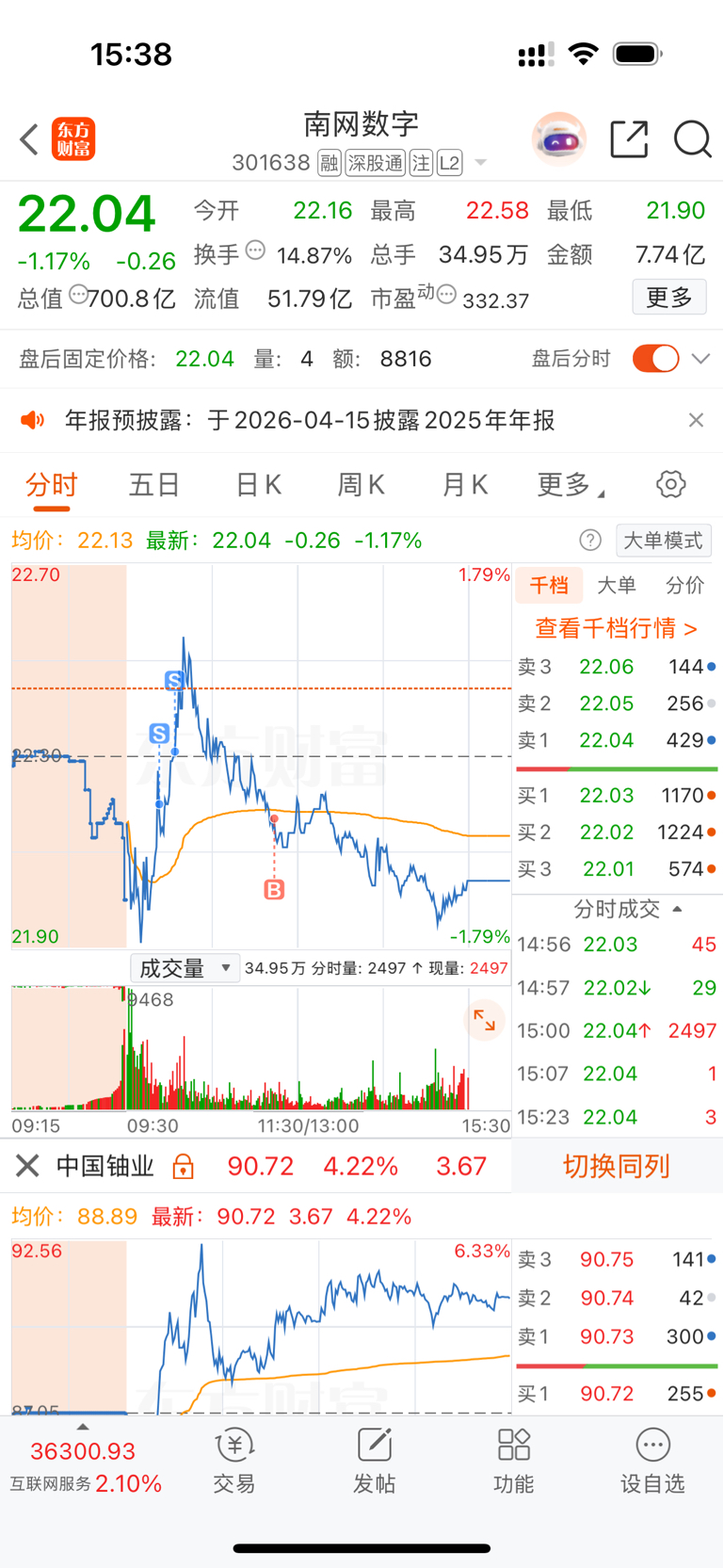 $蓝箭电子(SZ301348)$ $南网数字(SZ301638)$ 调仓做T 倒腾一下就能多赚几百何乐不为