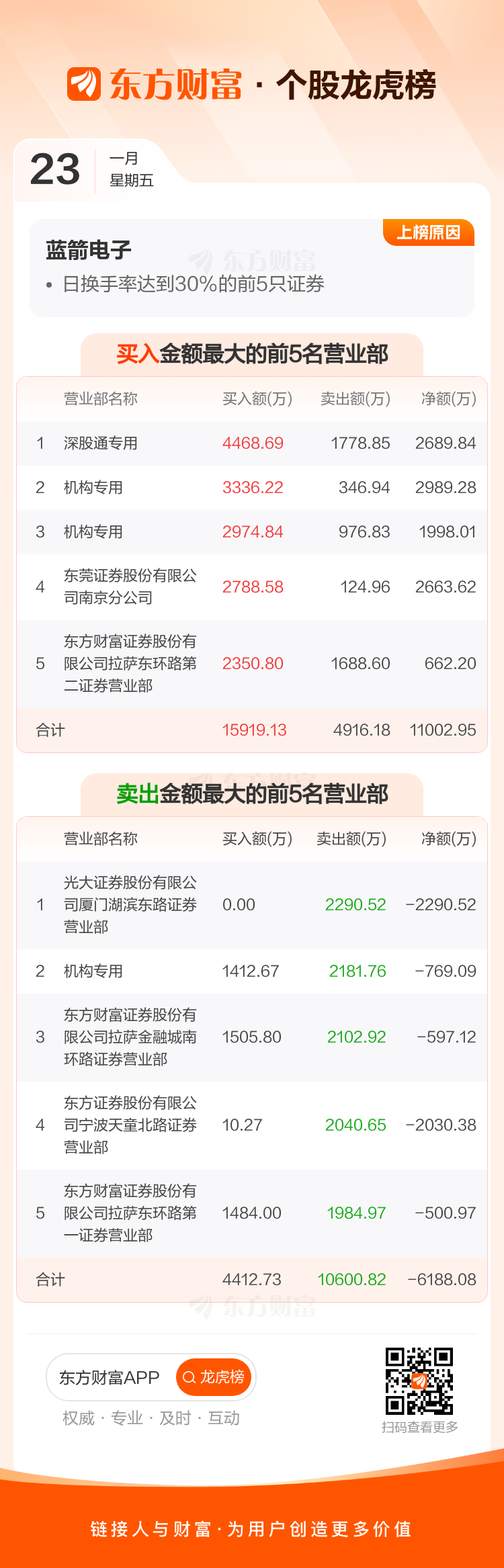 蓝箭电子(301348)龙虎榜数据(01-23)