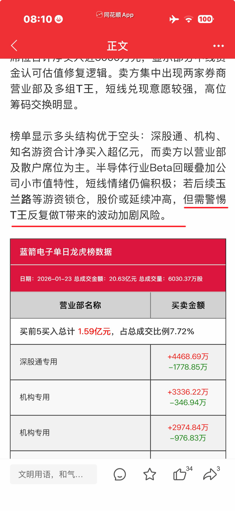 $蓝箭电子(SZ301348)$ 深股通和T王又做了一个大大的T