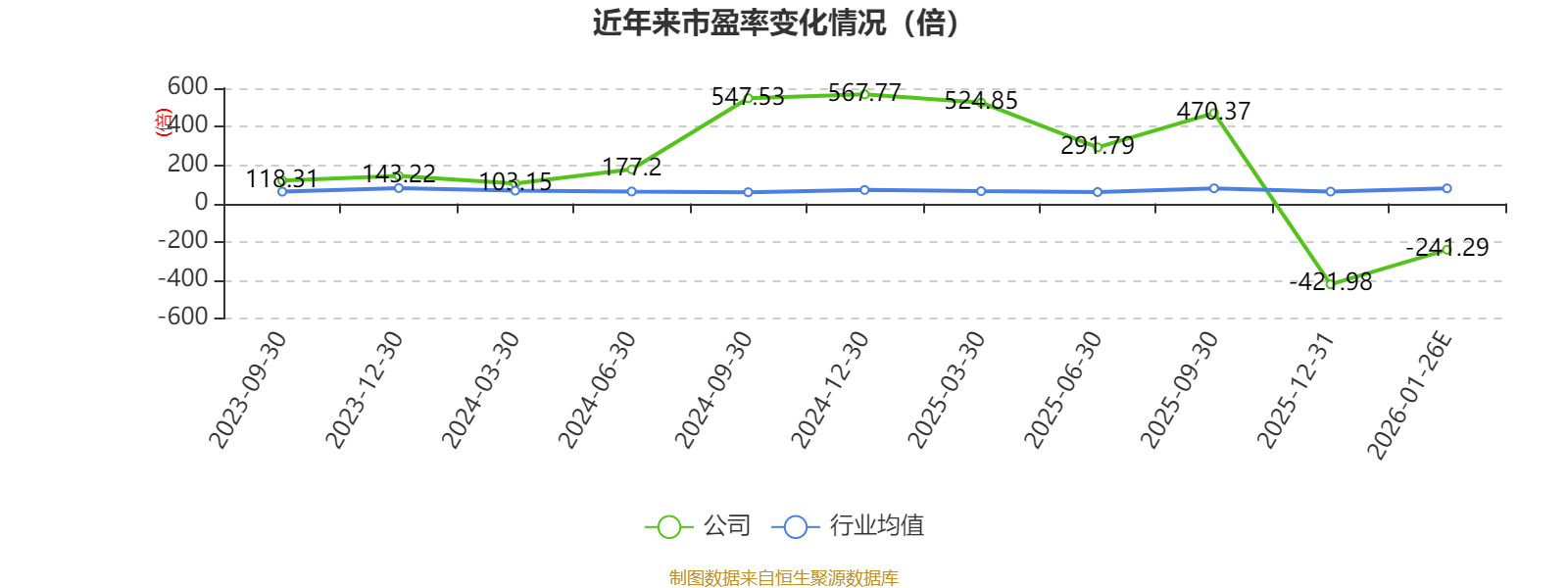 市盈率、市净率为负时,不显示当期分位数,会导致折线图中断。